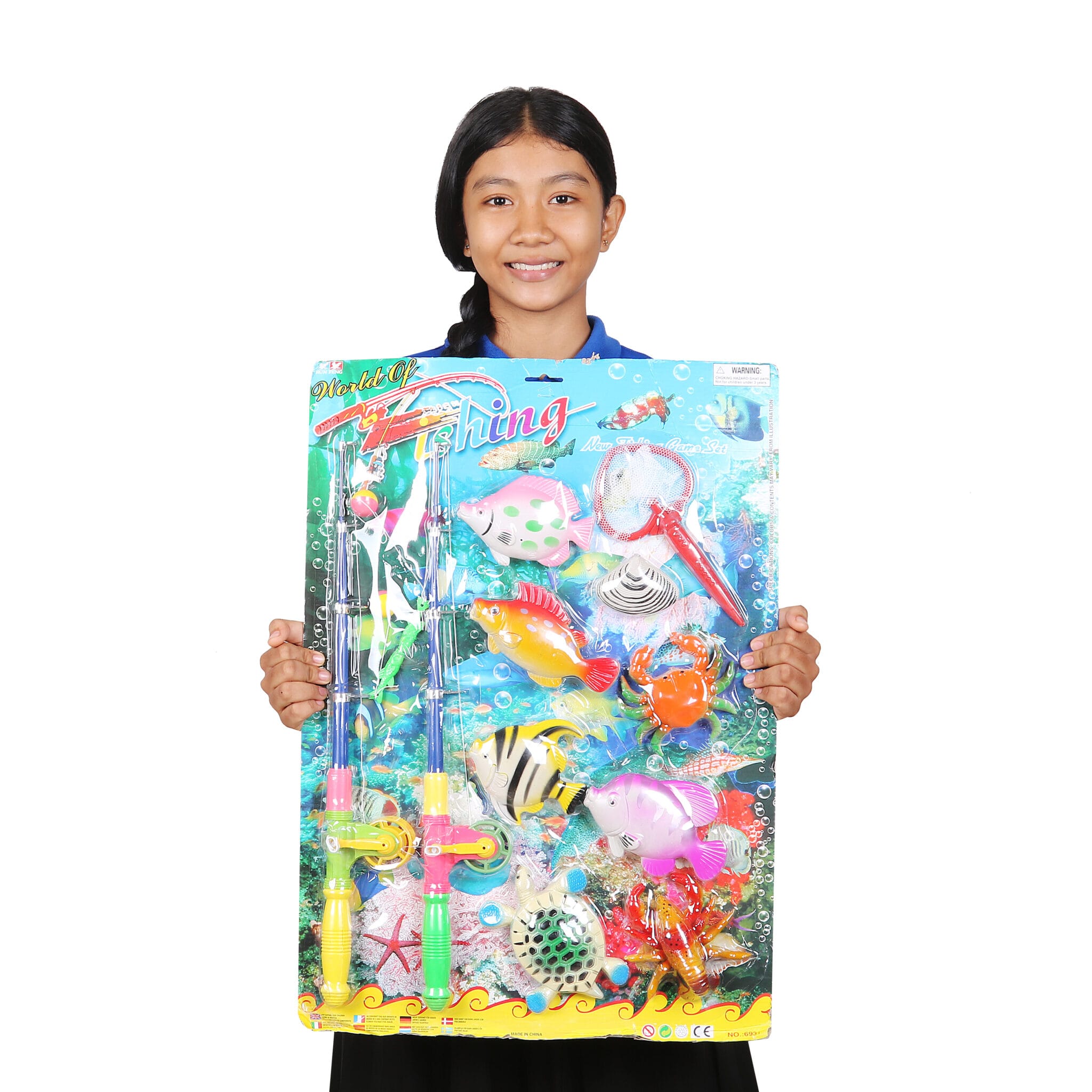 Fun fishing game for young boys and girls, complete with plastic fish and rods.