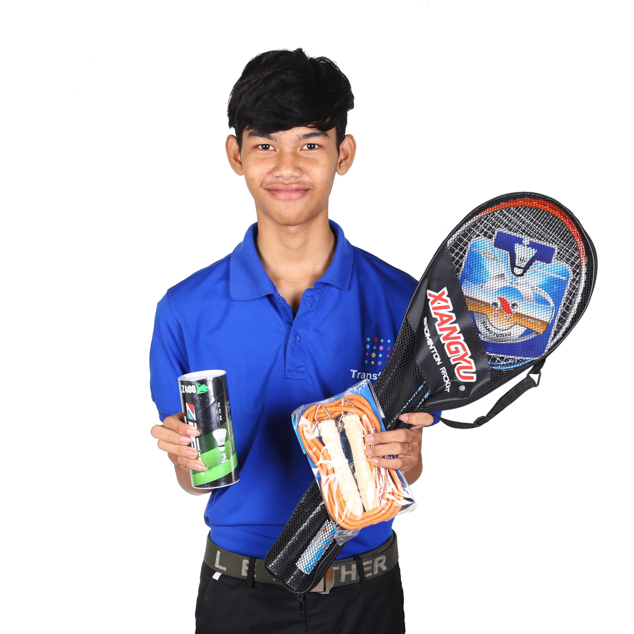 A badminton set and skipping rope sport set suitable for boys and girls of all ages.